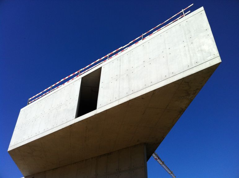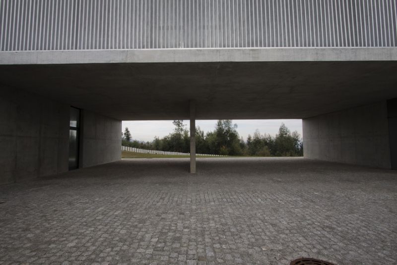 O edifício tem uma forma trapezoidal em planta, subindo cerca de 4m acima do nível do pátio. Perto da entrada, a disposição é de uma cave semi-enterrado com comunicação para o pátio. O lado sul, a cave ainda tem uma extensão para acomodar salas de apoio.