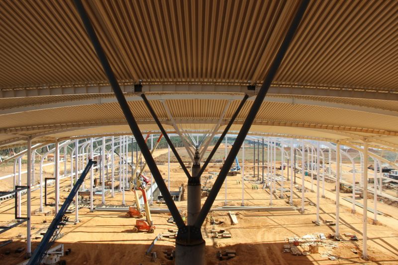 O edifício é composto por uma estrutura mista de pilares de betão e metal ordenados numa métrica de 10 metros que suportam uma cobertura metálica de chapas autoportantes. A forma da nave tipo Shed tira partido da orientação Norte-Sul permitindo direcionar uma grande quantidade de luz natural para os espaços interiores, para além de controlar a incidência solar direta. A geometria do edifício resulta da variação altimétrica de diferentes vãos separados 20 metros entre si, variando desde os 14 metros de altura na área de armazenamento (Norte) até aos 20 metros de pé-direito na área de fundição (Sul).