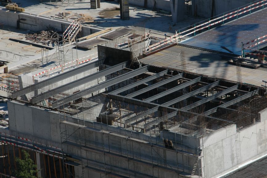 Todas as estruturas são em betão armado, incluindo a cobertura principal que vence um vão de 55 m. Esta cobertura possui abóbadas reforçadas suportadas por pilares com a forma de V. Existem clarabóias contínuas na cobertura entre abóbadas.